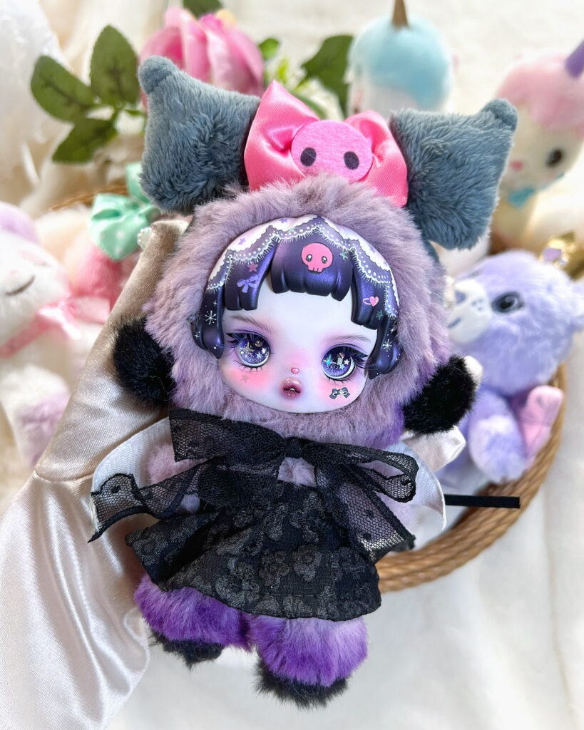 Includes: an authentic Sanrio Kuromi headband and a clear protective carry case so she’s safe when you take her out to play or display.