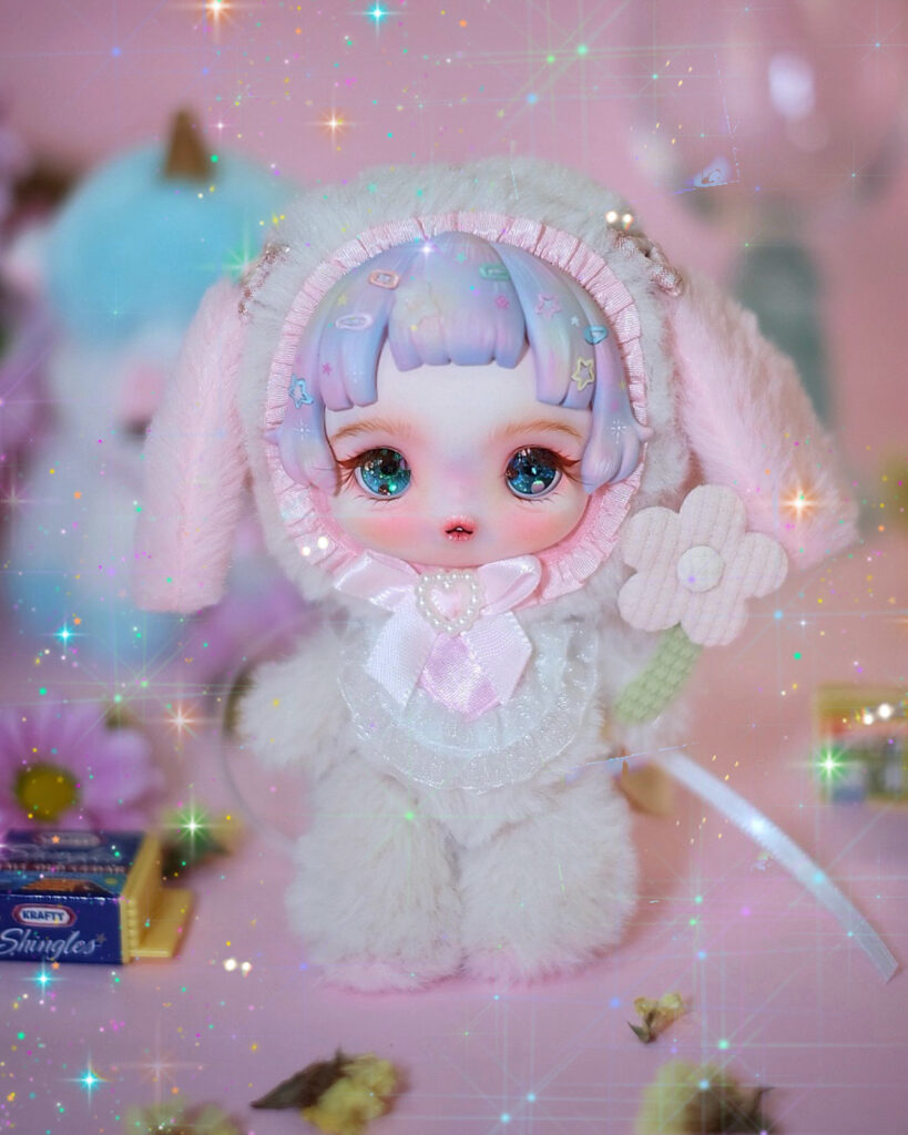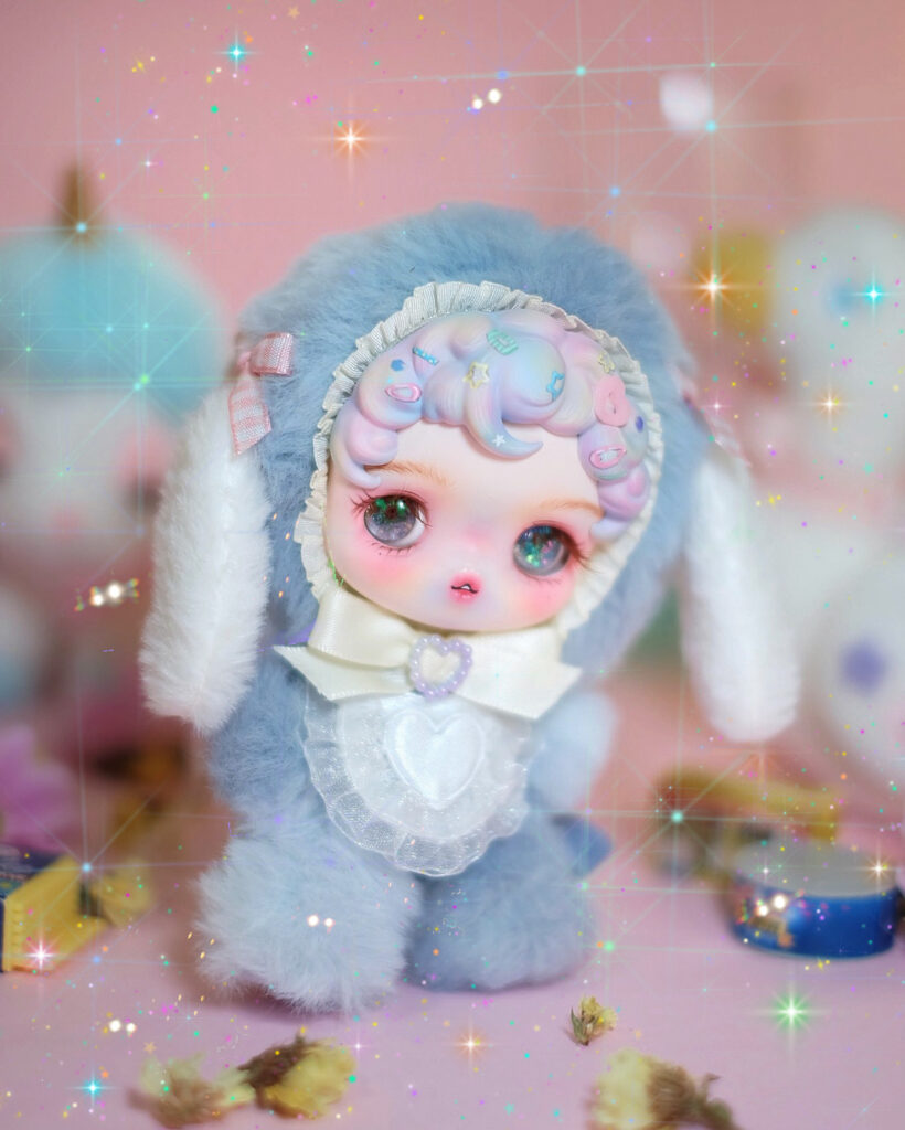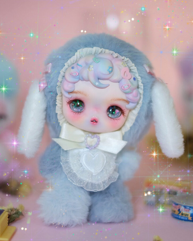 A soothing blue baby with white ears, made to feel calm just by looking at her.