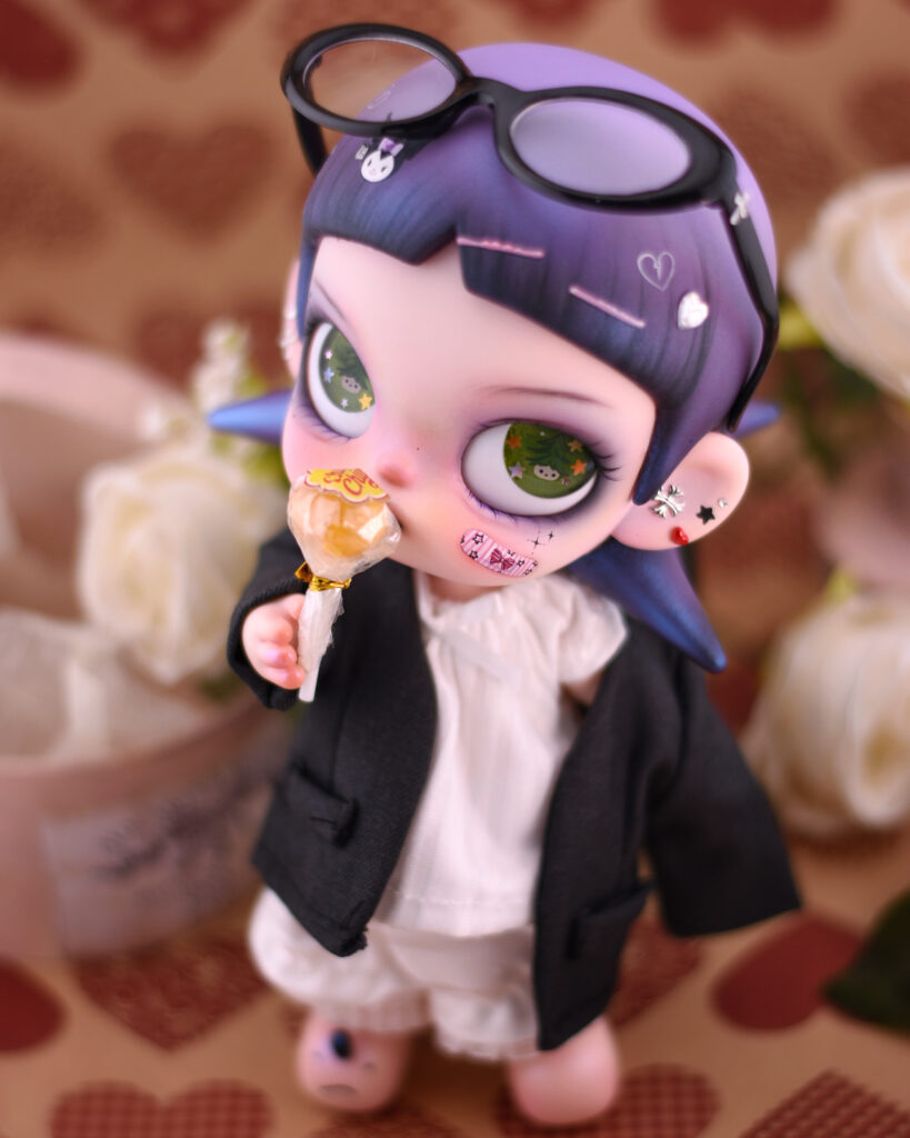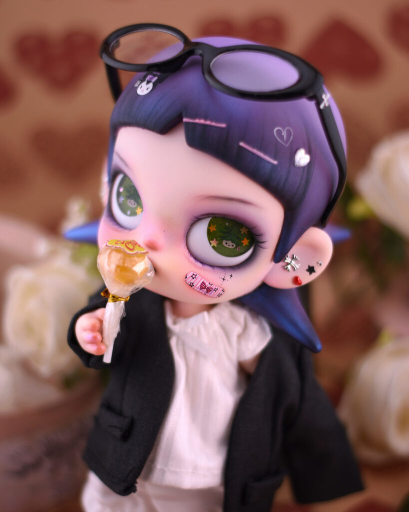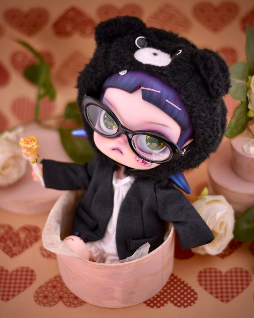I’ve always loved Zsiga’s size, body proportion, and that naturally mischievous personality. That playful, slightly rebellious vibe inspired me to transform her into a darker version a confident little soul who dares to be different and fully embraces her own identity.